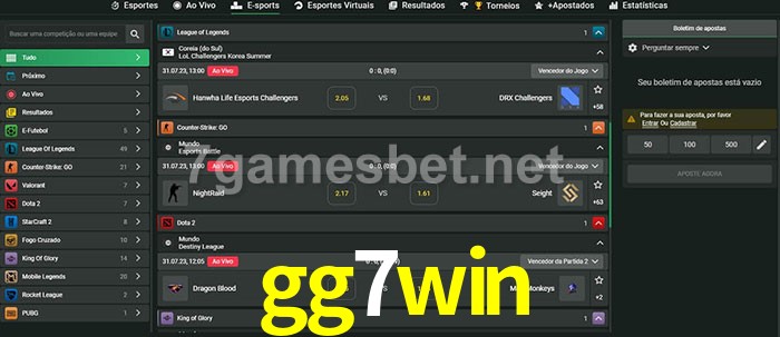 A aposta gg7win oferece aos jogadores a experiência mais conveniente de apostas em eSports!